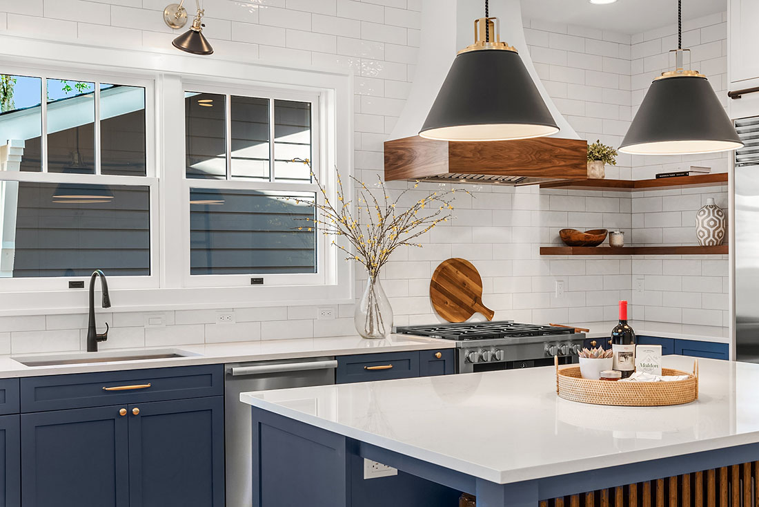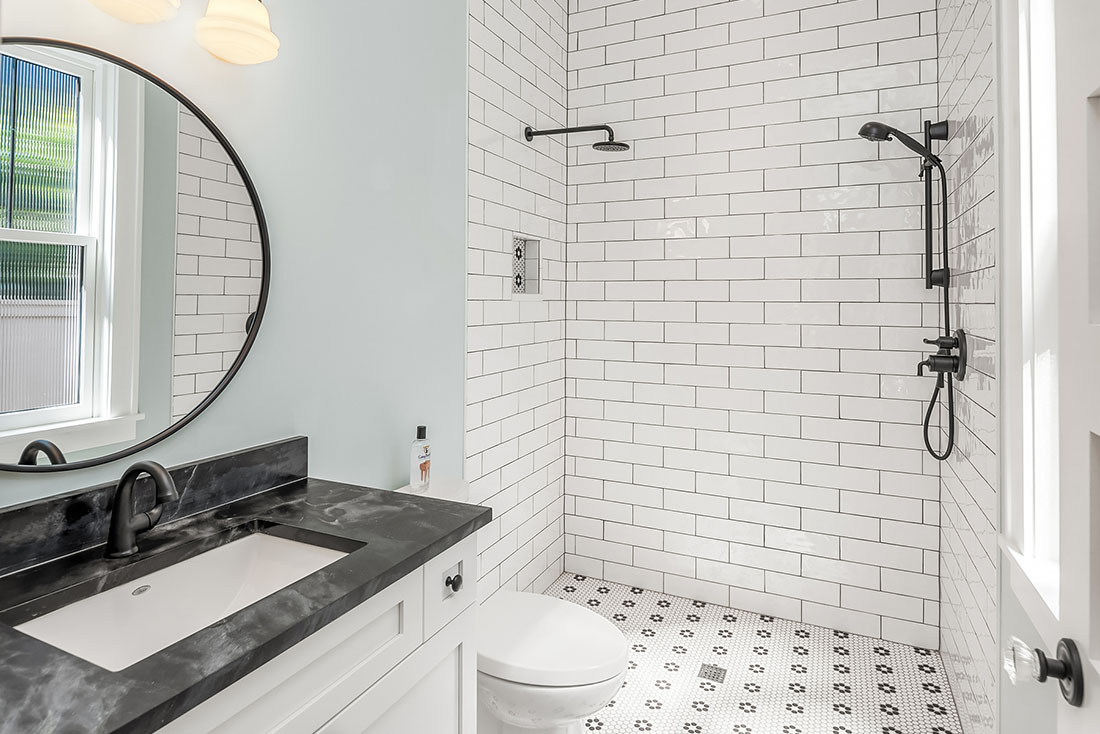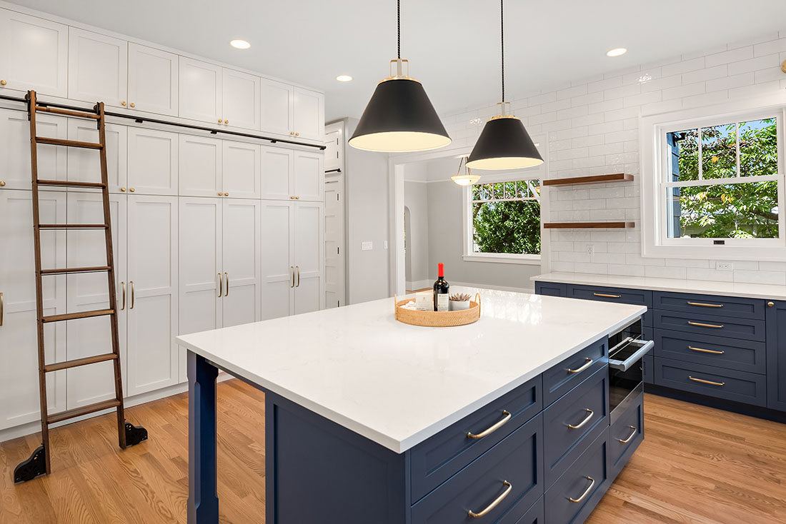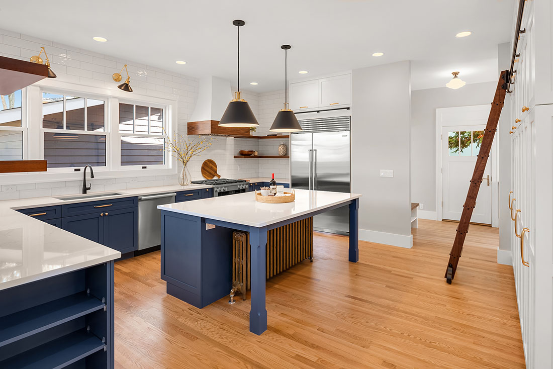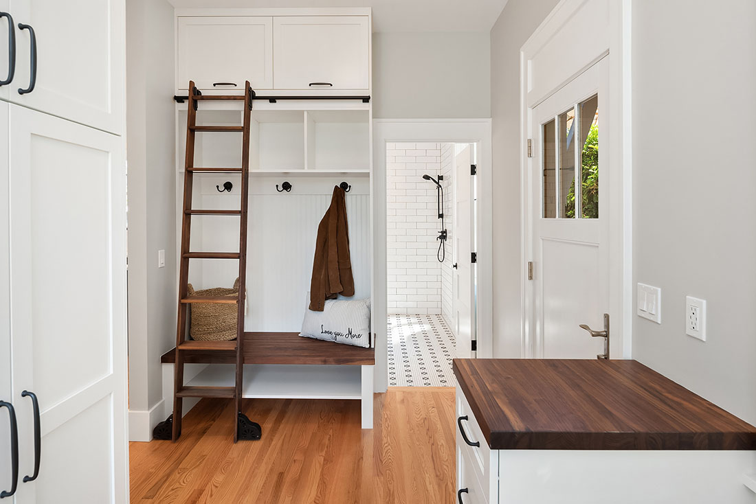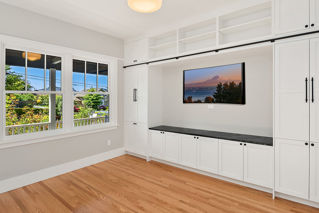 This historic, 1,000-square-foot home in Edmonds needed an update to accommodate an active family. This was a full home remodel, which included a brand-new custom kitchen and primary bath, powder room, mudroom, office, garage, and deck. The original doors and windows were maintained while new design elements and materials were incorporated, creating a home that fits the styles of the modern era while keeping the original character and charm of the home intact.