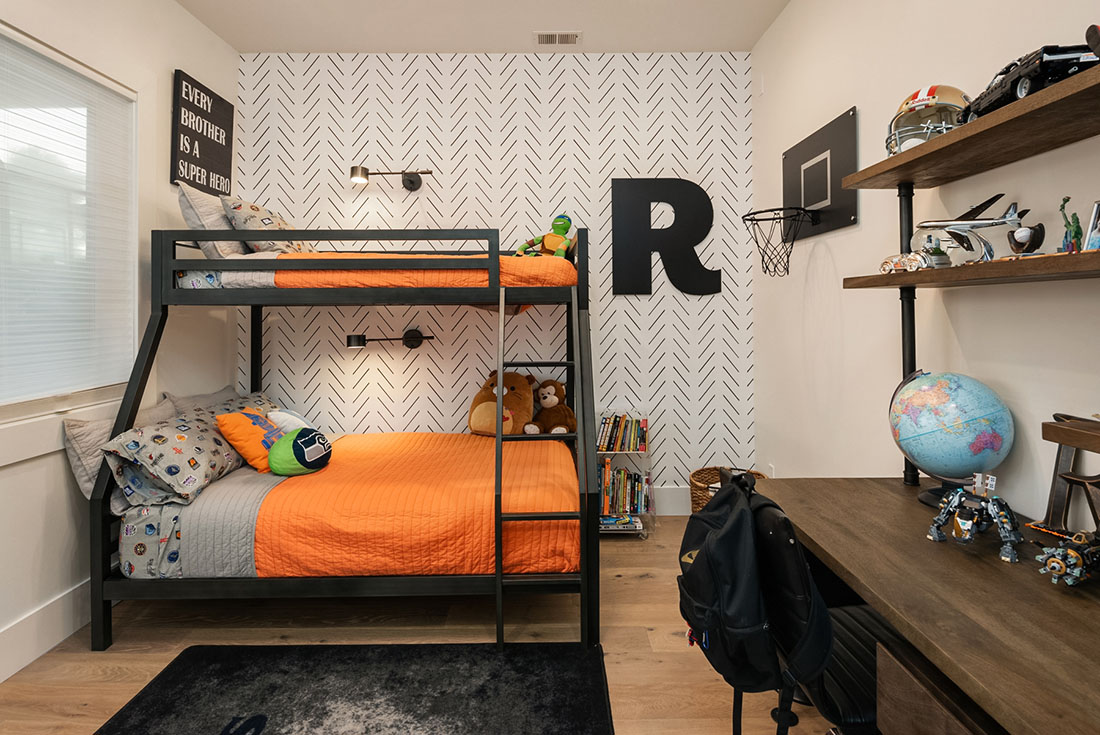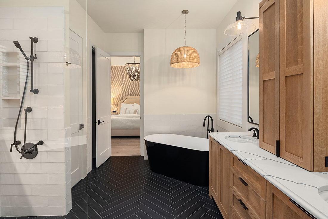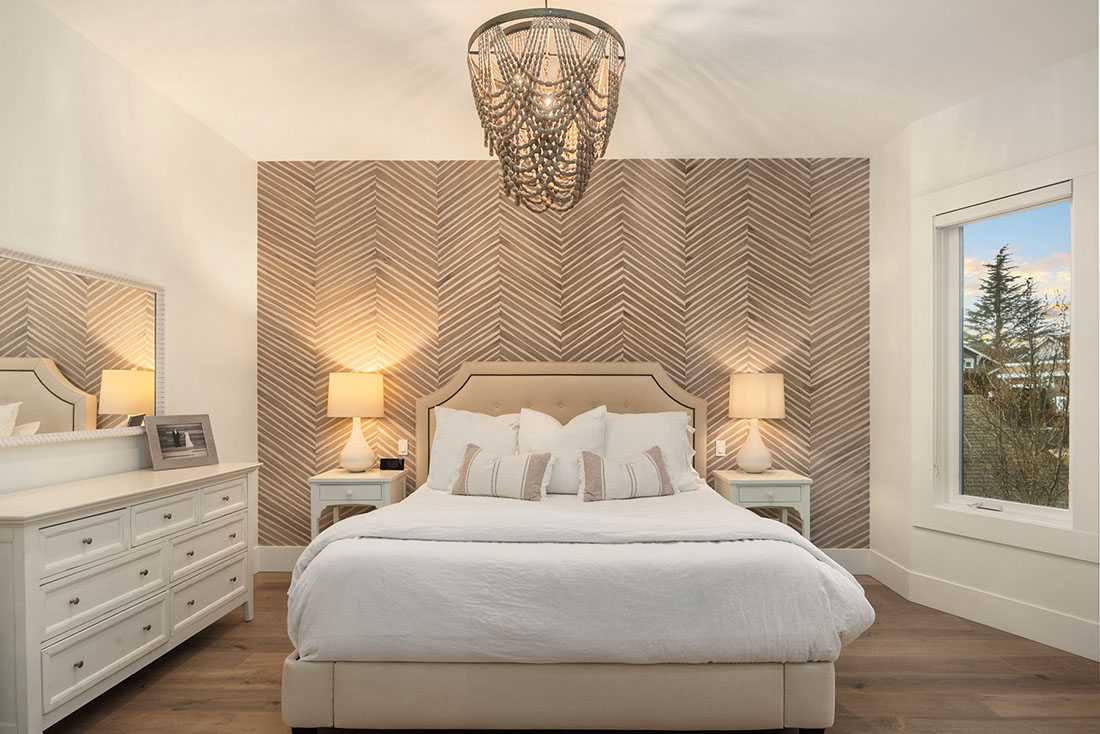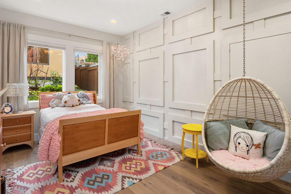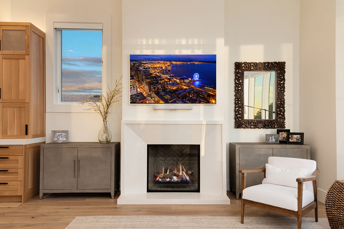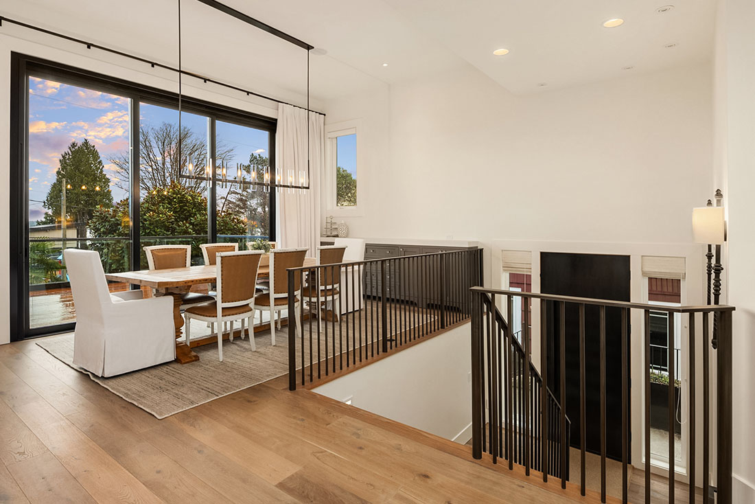 This extensive home remodel integrated tailored and luxurious living spaces to reflect the lifestyle of a builder and designer couple and their family. It features custom white oak cabinetry, neutral tones and organic, natural materials throughout the kitchen for a timeless and beautiful design. Opening up the living and dining areas created more open space to bring together the homeowner’s love of cooking and entertaining. Much of this 3,500-square-foot home is customized, including a black steel entry door, custom metal handrails, a Venetian plaster fireplace, and a motorized roof on the deck extending the entertaining possibilities throughout all the Pacific Northwest seasons. A media room with custom cabinetry and surround sound was added as a centerpiece for family activities.