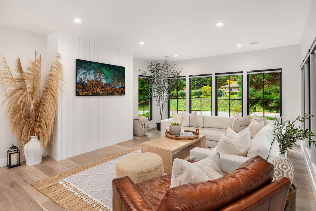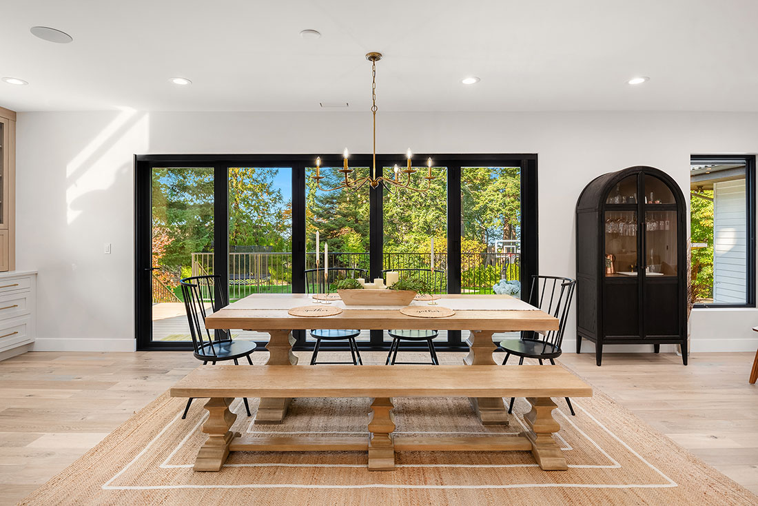 Organic textures and natural wood tones combined with warm custom cabinetry and finishes made this 4,200-square-foot full home remodel the ultimate modern, open concept farmhouse. A large custom, white oak front door offers the first statement piece upon entering. The homeowners are a family with young children who wanted to create a fun, open concept floor plan for endless entertaining, in conjunction with very functional spaces and amenities. That included a main floor office, primary suite, mudroom storage and lockers, and Control4 system offering a customizable smart home solution to automate and control the homes technical devices.